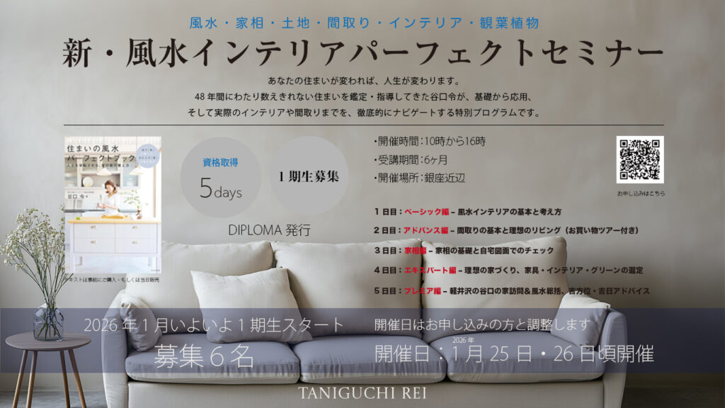 半年かけて新しい風水インテリアを学ぶ!DIPLOMA差し上げます!