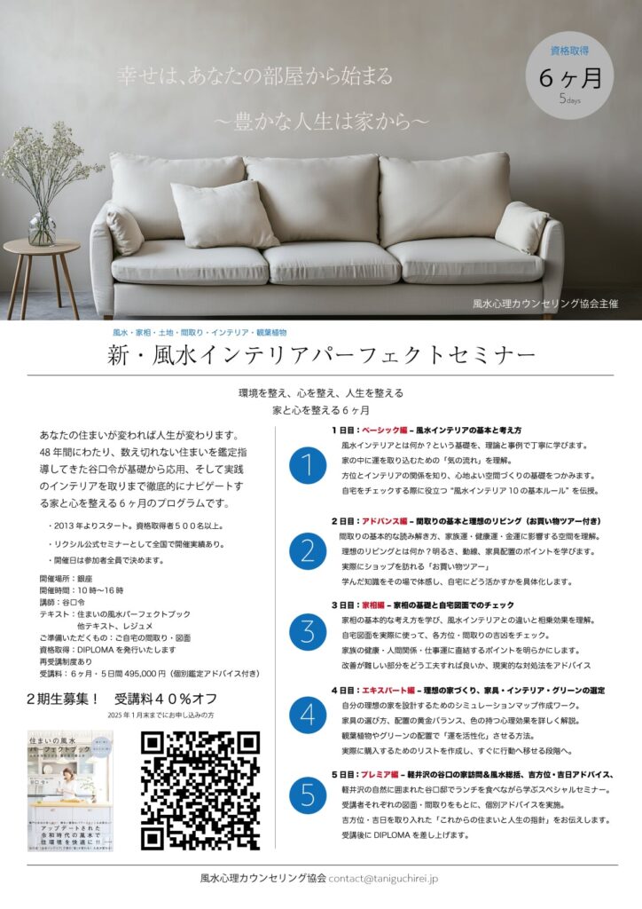 半年かけて新しい風水インテリアを学ぶ!DIPLOMA差し上げます!開催日はお申し込みの方と全て調整します。